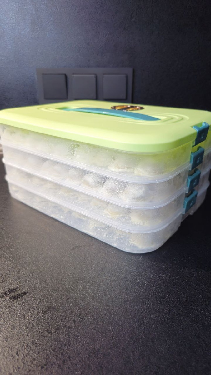 Этот контейнер идеально подходит для замораживания pельменей, вареников и многих других полуфабрикатов. Одним из главных достоинств является то, что его можно ставить друг на друга, что позволяет экономить пространство в морозильной камере. Несмотря на компактные размеры, он предлагает внушительную вместимость.