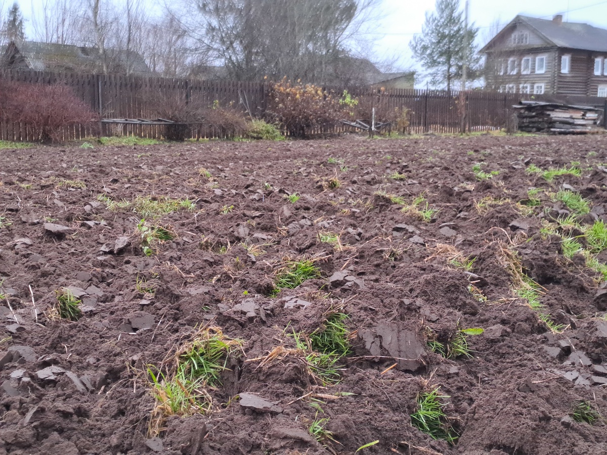 В этом году тёплая осень вызвала активный рост травы на огороде, и он почти полностью задернился. Тем не менее, важно справиться с этой ситуацией и провести вспашку, чтобы подготовить почву для следующего сезона.