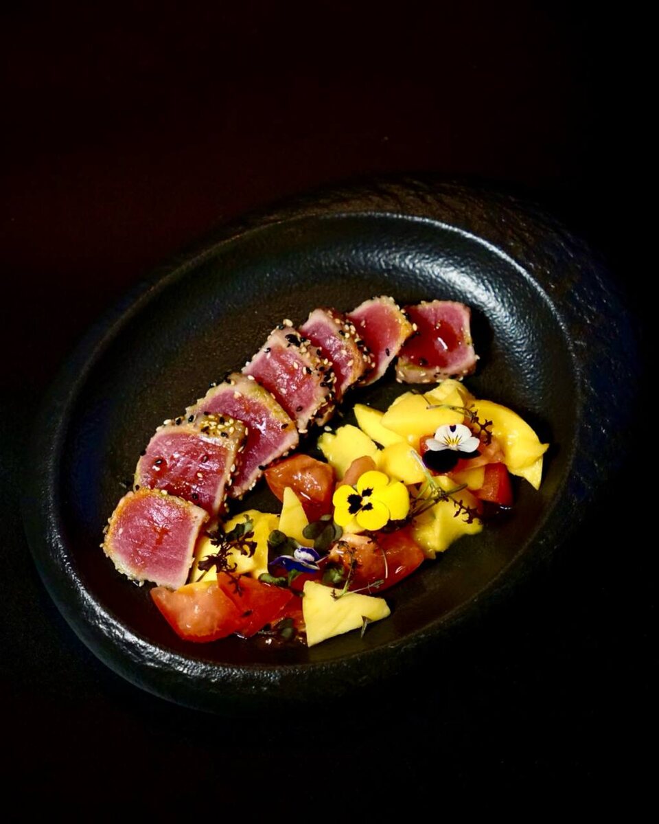 Тунец татаки с манго и соусом из маракуйи — это не просто блюдо, а настоящее искусство кулинарии, где каждый ингредиент создает неповторимый ансамбль. Искусно приготовленный тунец, обрамленный сладостью спелого манго и освежающим соусом, раскрывает свои вкусовые ноты в удивительной гармонии.