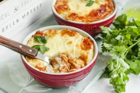 Контраст текстур сохраняется благодаря запеканию до золотистой корочки и мягкому пюре сверху. В итоге получается комфортное блюдо, которое можно подать прямо из духовки и насладиться в умеренном темпе дня.