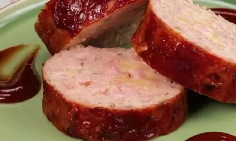 Поместите рулет в разогретую до 200 градусов духовку. В течение первых 50 минут все ароматы смешаются, и внутри образуется нежная начинка. После этого аккуратно снимите фольгу, намажьте рулет соусом барбекю и подрумяньте его при 180 градусах в течение 10 минут. Дайте рулету отдохнуть перед нарезкой, чтобы он не развалился.