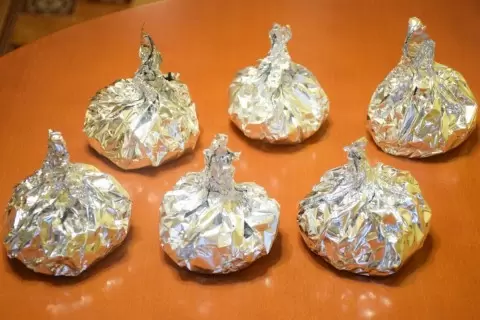 Собрать мясо и фольгу в шар, выложить на противень и отправить в заранее разогретую духовку до 180-190 градусов на 30 минут.