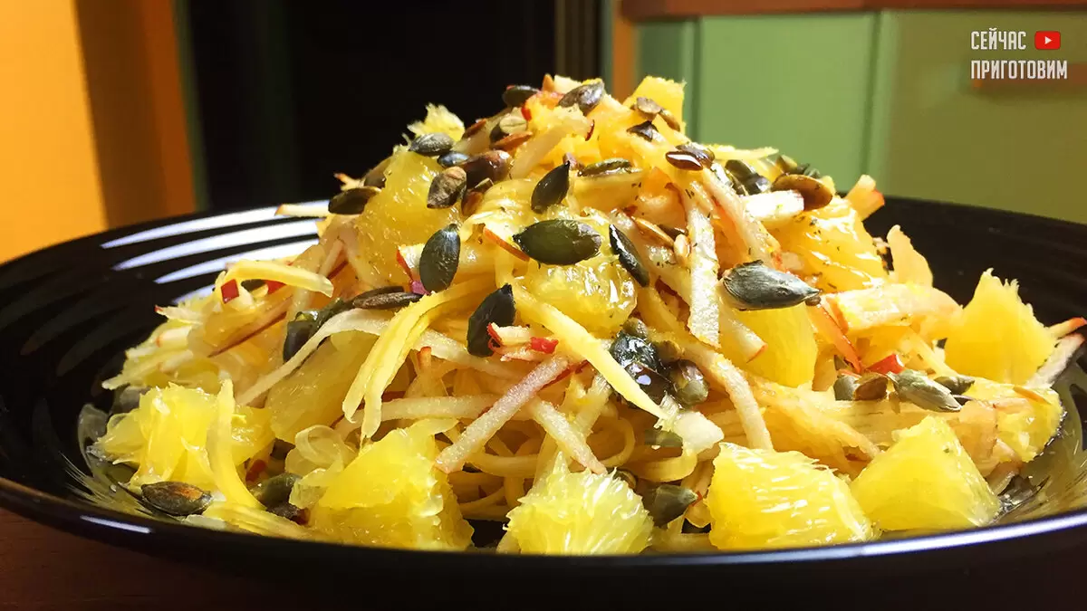 Представляем вашему вниманию питательный и свежий салат, состоящий из сельдерея, тыквы и апельсина. Он не только порадует ваш вкус, но и подарит отличное самочувствие!