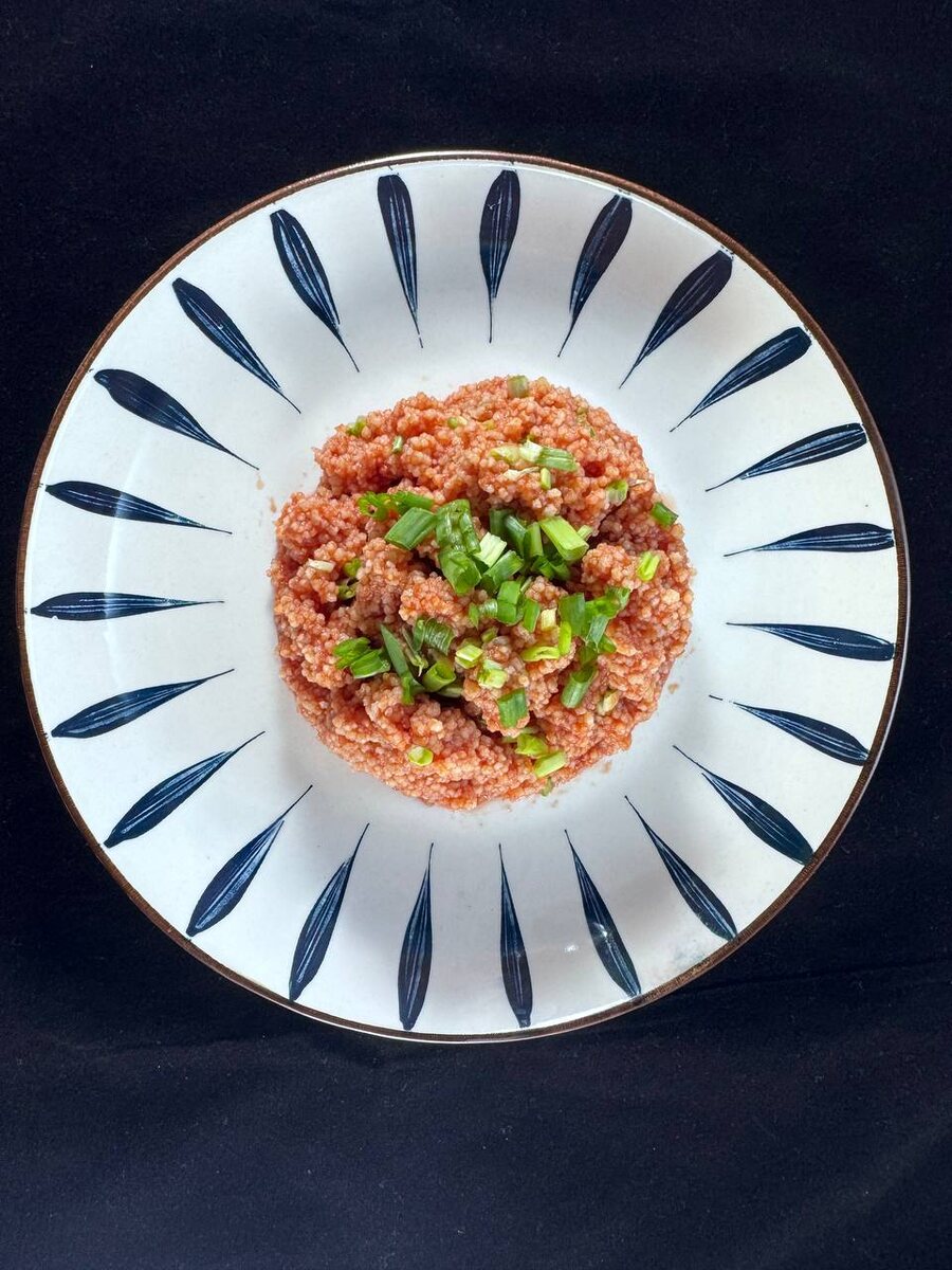 Этот рецепт кускуса, приготовленного с томатным соком и зелёным луком, станет настоящей находкой для тех, кто придерживается поста или хочет разнообразить своё меню. Он прост в приготовлении и идеально соответствует принципам «сухоедения».