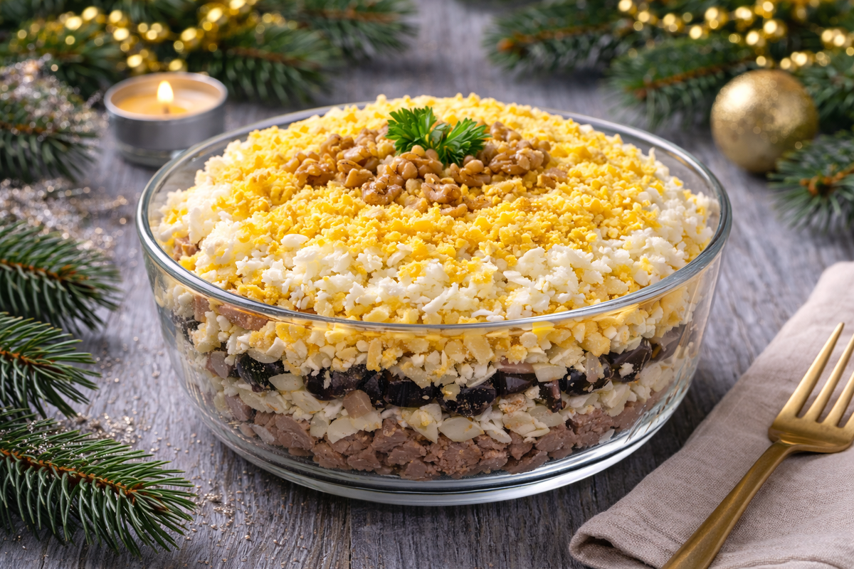 Салат «Графский» является идеальным вариантом для праздничного стола, благодаря своему благородному вкусу и эффектной подаче. Этот слоёный салат часто оказывается на главных застольях в Новый год и другие торжества, где сочетание отварного мяса, чернослива, орехов и сыра завораживает гурманов.