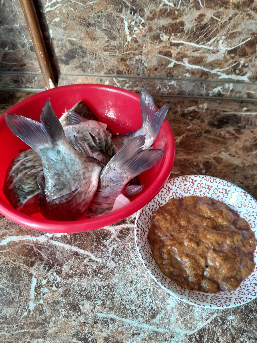 Подготовка карпа: Начать следует с тщательной очистки рыбы: удалить чешую, жабры и внутренности, затем хорошо промыть под холодной водой. В зависимости от размера сковороды карп должен быть нарезан на удобные порционные куски или оставлен целым. Приправить солью и перцем с обеих сторон и оставить мариноваться на 15-20 минут.
