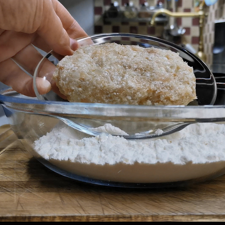 Котлеты обваливаются в муке и обжариваются на разогретой сковороде. Прожаривать их следует не до полной готовности, а лишь поджарить с каждой стороны по пять минут на высоком огне с использованием растительного масла.