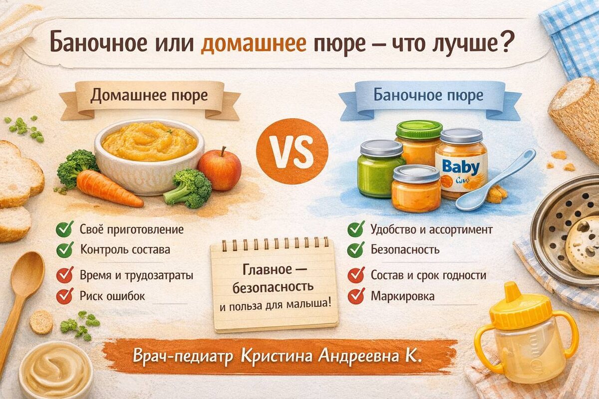 Таким образом, оба варианта имеют право на существование. Многие родители предлагают своим детям как баночные, так и домашние пюре. Главное — подходить к выбору осознанно, учитывая безопасность, состав и собственные предпочтения, пишет источник.