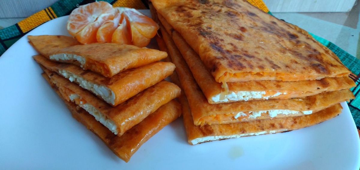 Если ваш лаваш прямоугольный, его можно легко разрезать пополам. Вы можете экспериментировать с начинками: готовить лепешки только с тыквой, с творогом или объединить оба ингредиента. К тыквенной начинке идеально подойдут любимые сухофрукты, а для творожной — мак и изюм. Хорошо прижмите края лаваша, предварительно смочив их водой, чтобы начинка не вытекла.