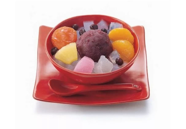 Приготовление: В глубокую миску выложите кубики желе кантэн, добавьте ложку пасты анко, украсьте фруктами, мороженым или взбитыми сливками и полейте сладким сиропом. Традиционно используется черный сироп мицуи, но можно применять и другие варианты.
