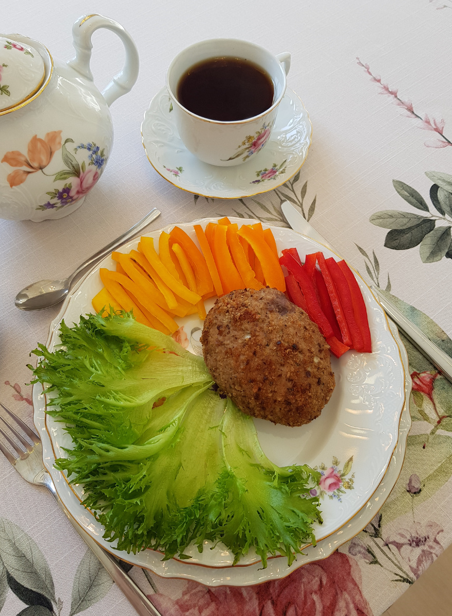 Готовые котлеты можно подачивать с листьями салата и сладким перцем.