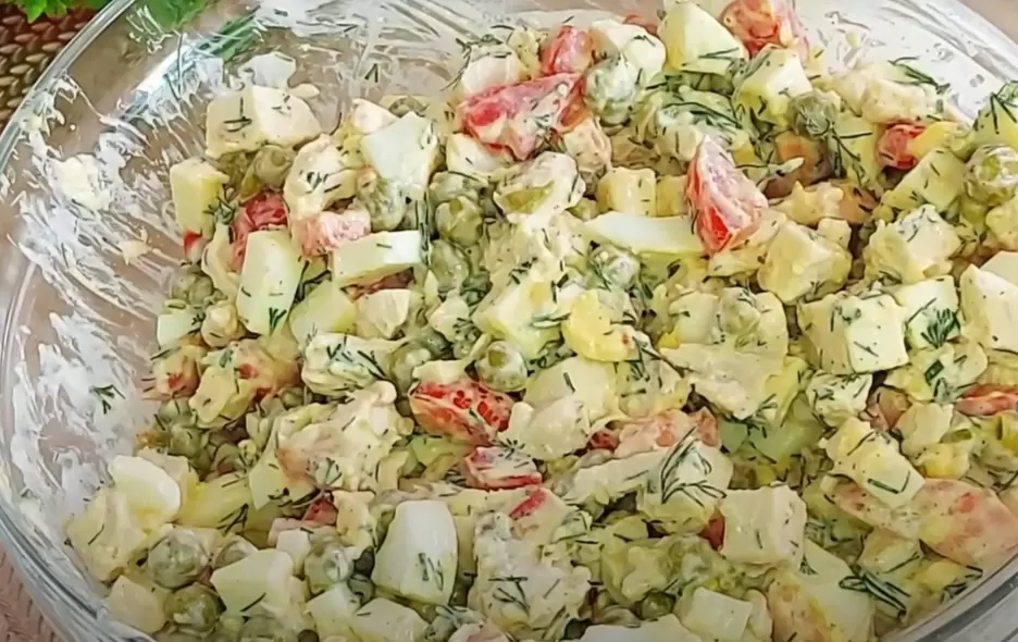 Секрет популярности этого салата заключается в его доступности и простоте приготовления. Рецепт включает в себя всего несколько ингредиентов: от вареной курицы до свежих овощей. Каждый элемент приносит свой уникальный вкус, а горошек добавляет сладость и текстуру, превращая обычное блюдо в нечто особенное.